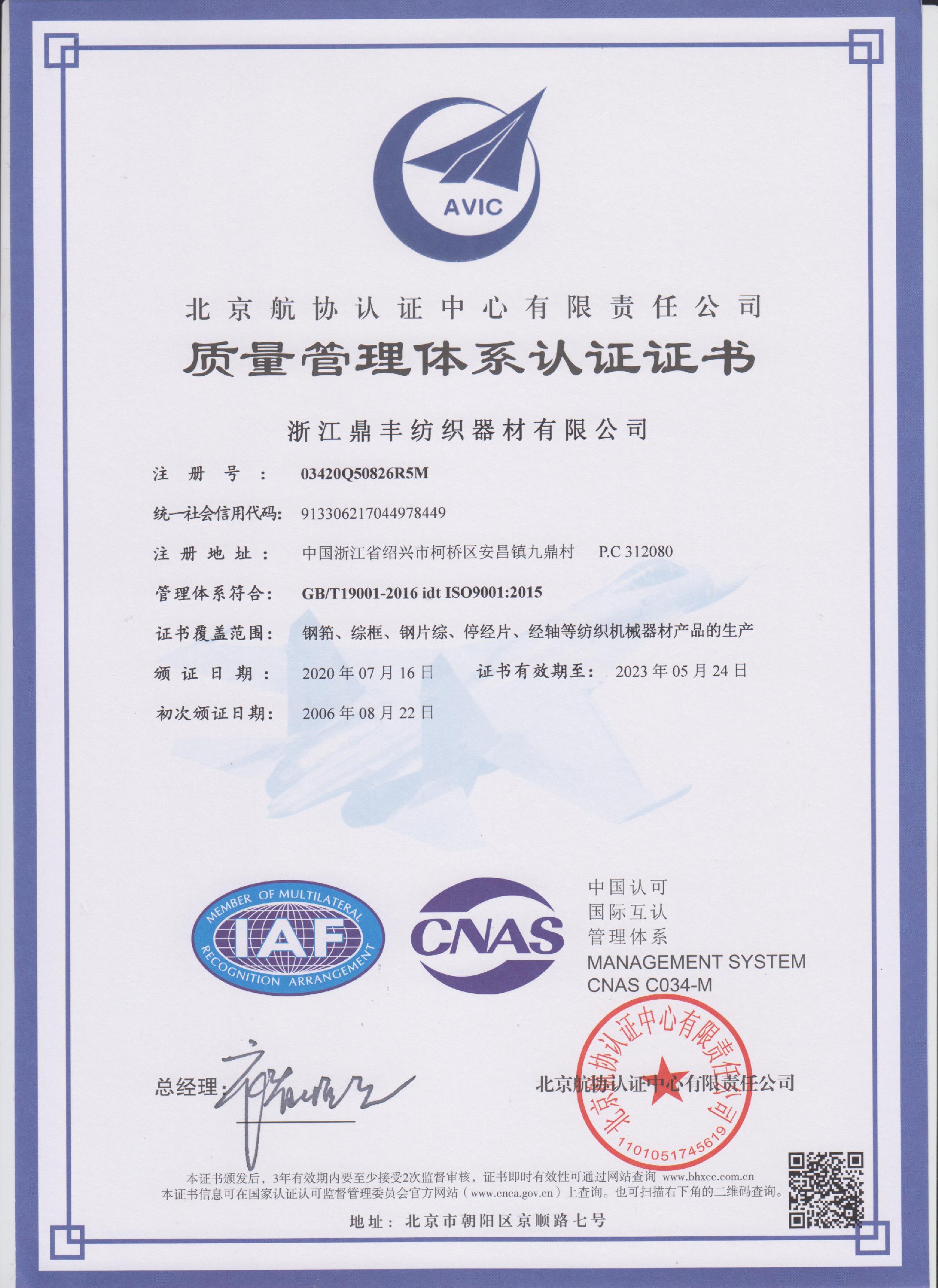 1、貴公司是一家專業生產各類無梭織機鋁合金鋼筘、綜框、鋼片綜、停經片、經軸、織軸和卷布輥等產品及配件的民營企業。公司成立30多年迅速發展、占領市場的秘決是什么?余定雅:是高品質的產品,完善的售后服務和大規模的生產能力保證了浙江鼎豐紡織器材有限公司的產品銷售量在國內獨占鰲頭。為了與全球市場經濟接軌,鼎豐紡